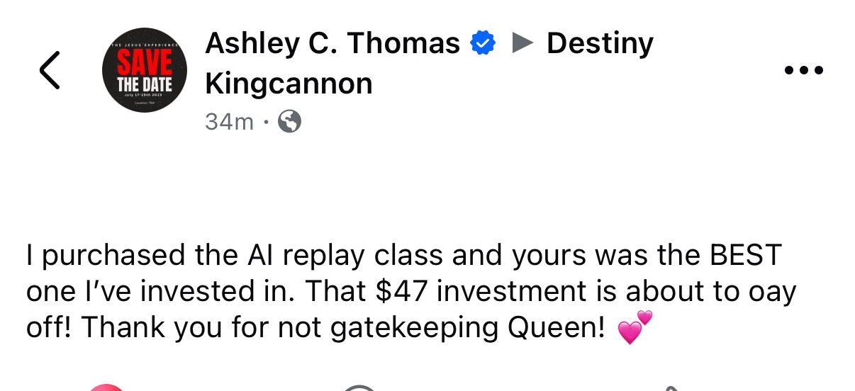 By integrating AI into her content, workflow, and business structure, Destiny more than doubled her business revenue in less than a year.